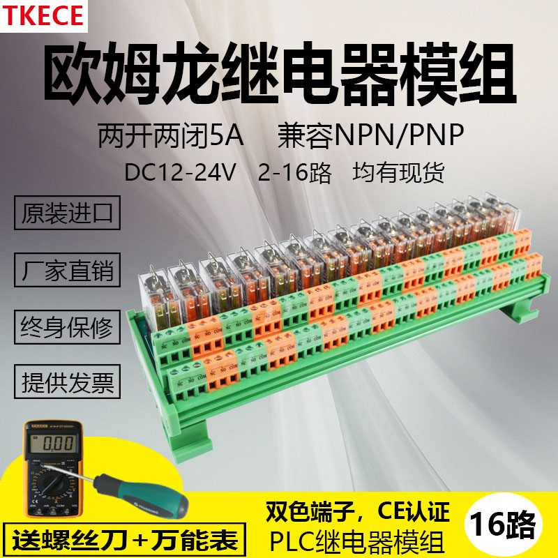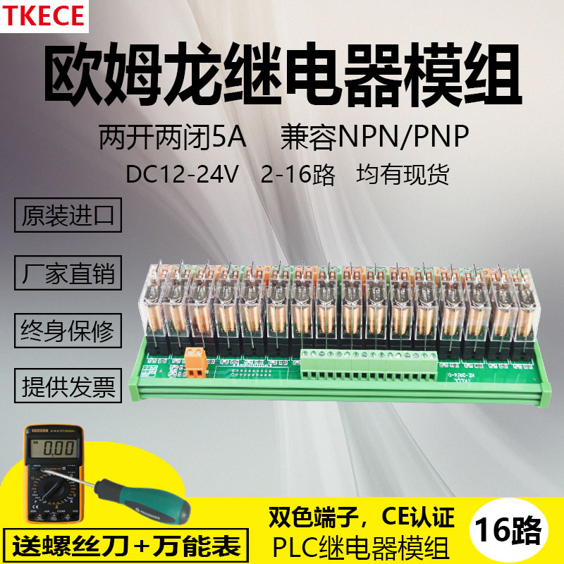 16路欧姆龙继电器模块PLC控制板放大板组合继电器模组2开2闭TKECE