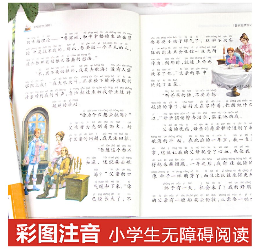 小学版 鲁滨逊漂流记彩图注音版 拼音版 小学生语文学生阅读鲁滨孙漂流记汕头大学出版 包邮 适合一二12年级名校班主任推荐 社 满5件