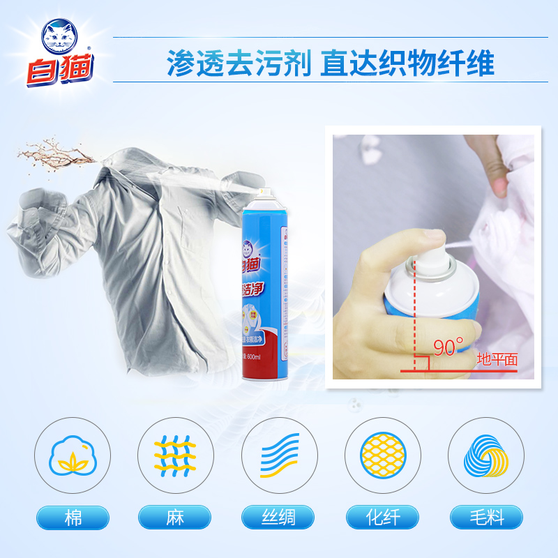 白猫喷洁净600ml 清洗剂亮白去渍衣领净去油 2瓶去污渍小白鞋