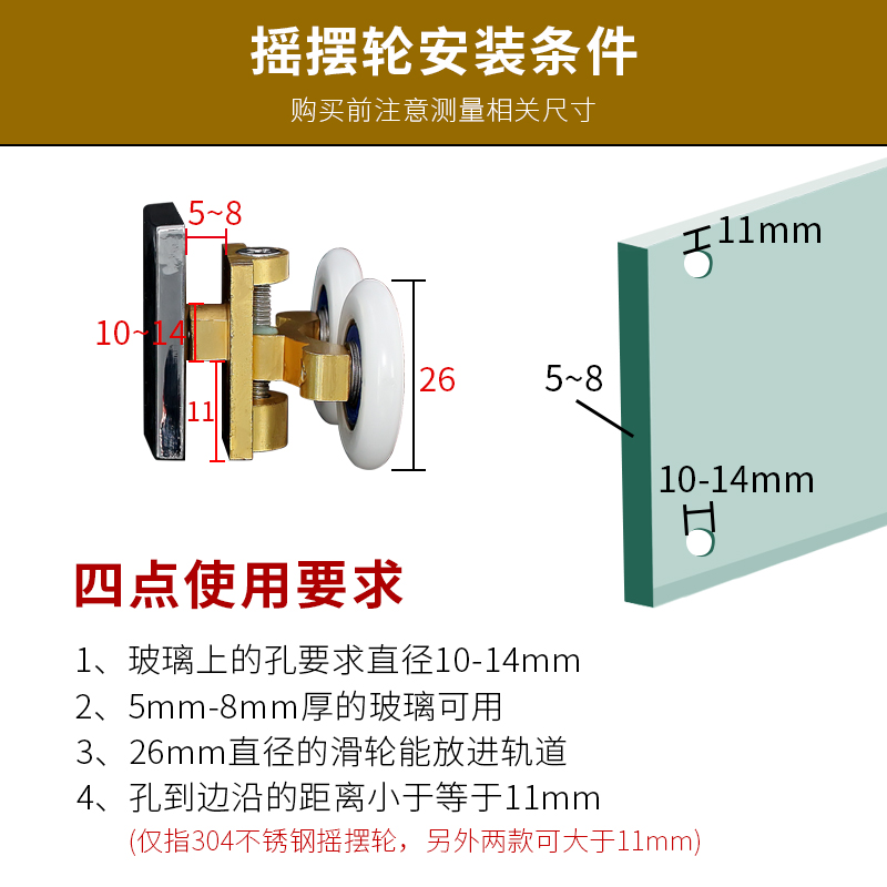 老式 淋浴房滑轮圆弧玻璃门浴室门玻璃浴屏配件轮子摇摆滚轮卫浴