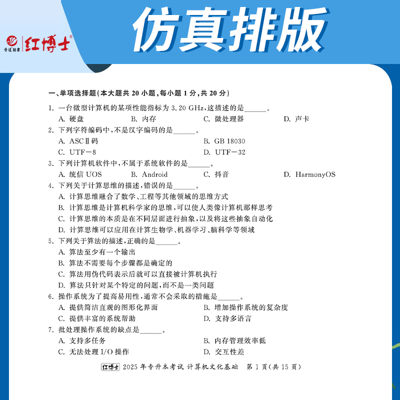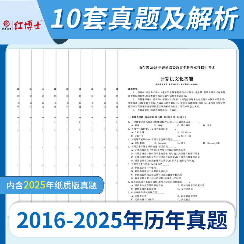 晋远红博士官方 备考2026山东专升本计算机真题历年真题试卷计算机文化基础历年真题试卷普通专升本试卷题库2016 2025年
