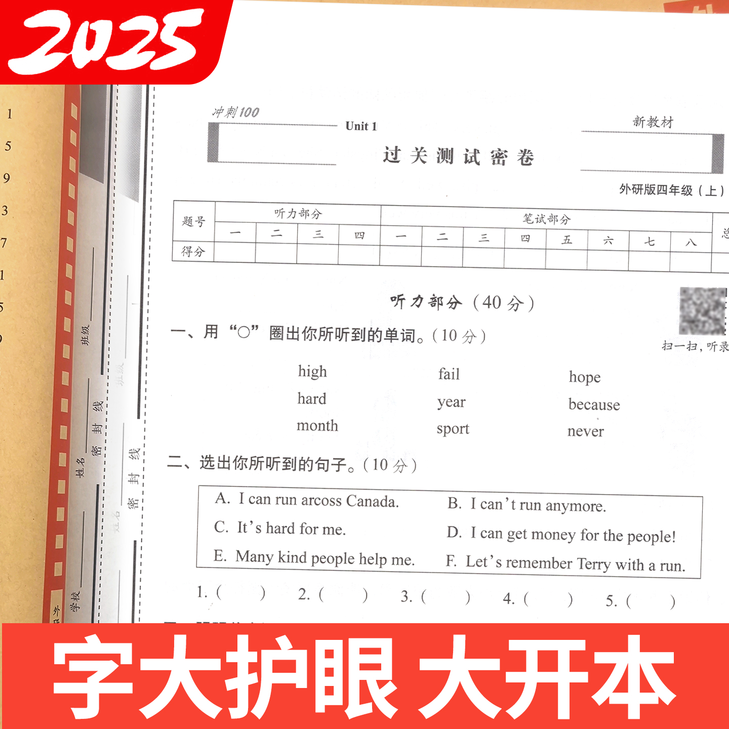 外研版 期中真题模拟考试卷子 一三起点英语试卷新交际一二三年级四五六年级上册下册试卷测试卷全套期末冲刺100分小学教材同步单元