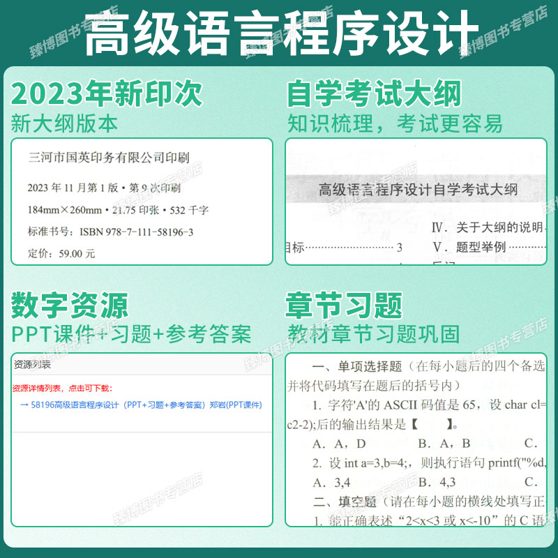社9787111581963自学考试试卷自考真题一考通题库2025 机械工业出版 成人自考00342 13013高级语言程序设计自考教材附大纲郑岩2017版