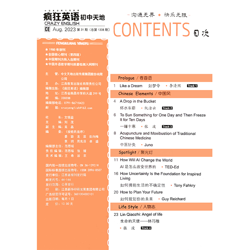 疯狂英语初中版 单本 杂志2023年8月初中天地中英文双语阅读英语街初中生2020过刊