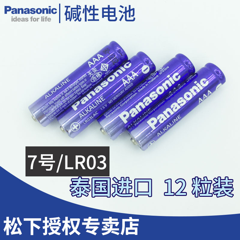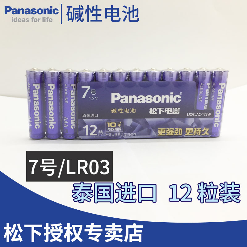进口 干电池儿童玩具电视空调遥控器键盘鼠标家用小电池1.5V原装 松下电池7号碱性电池12粒LR03正品 七号AAA原装