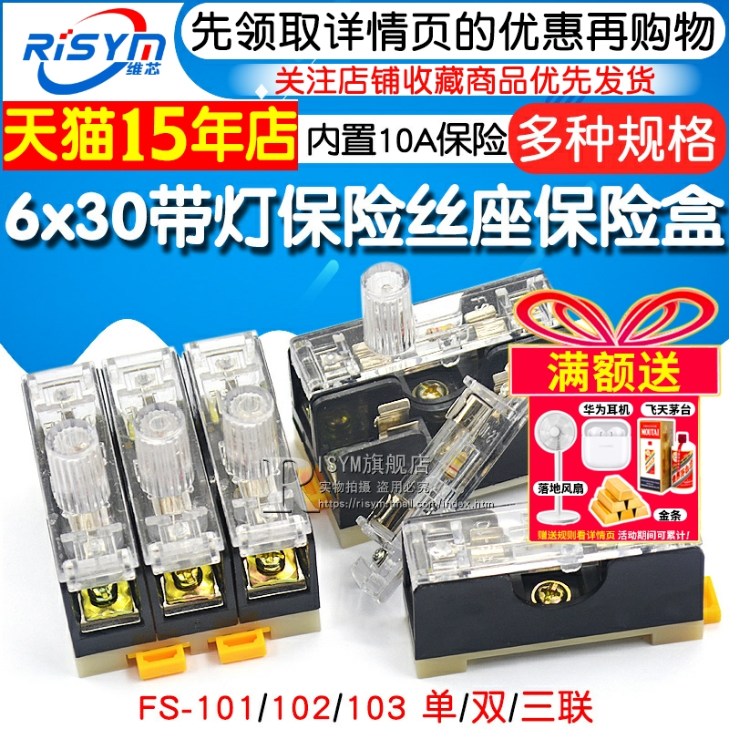102 内置10A 6X30 03单双三联 101保险丝座带灯保险盒保险座