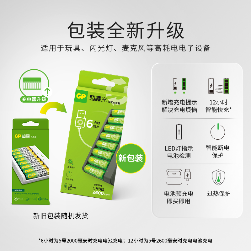 1.2V 2600毫安时八槽8槽大容量 KTV话筒酒店餐厅会所学校采购批发五号镍氢快充 旗舰店正品 GP超霸5号充电套装