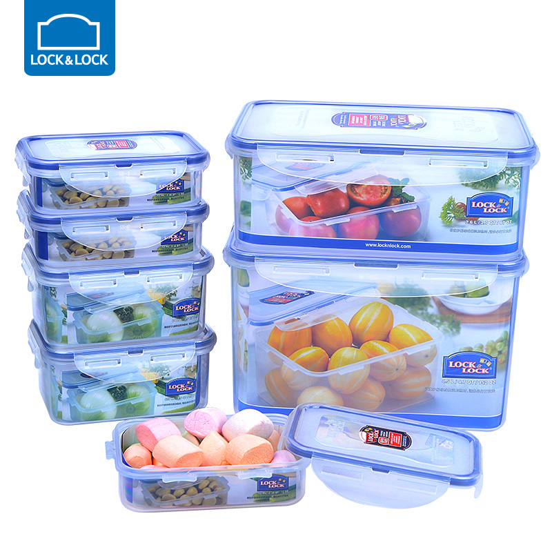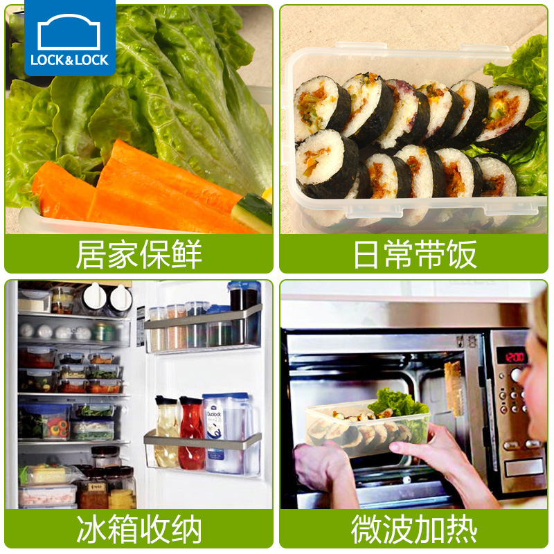 乐扣乐扣饭盒便当盒学生带盖塑料水果保鲜盒套装 长方形冰箱收纳盒