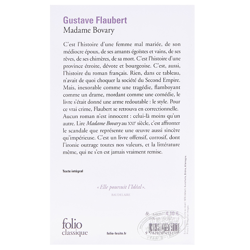 Madame 法文文学 包法利夫人 Flaubert Gustave Bovary Classique Folio 法文原版 法国法文版