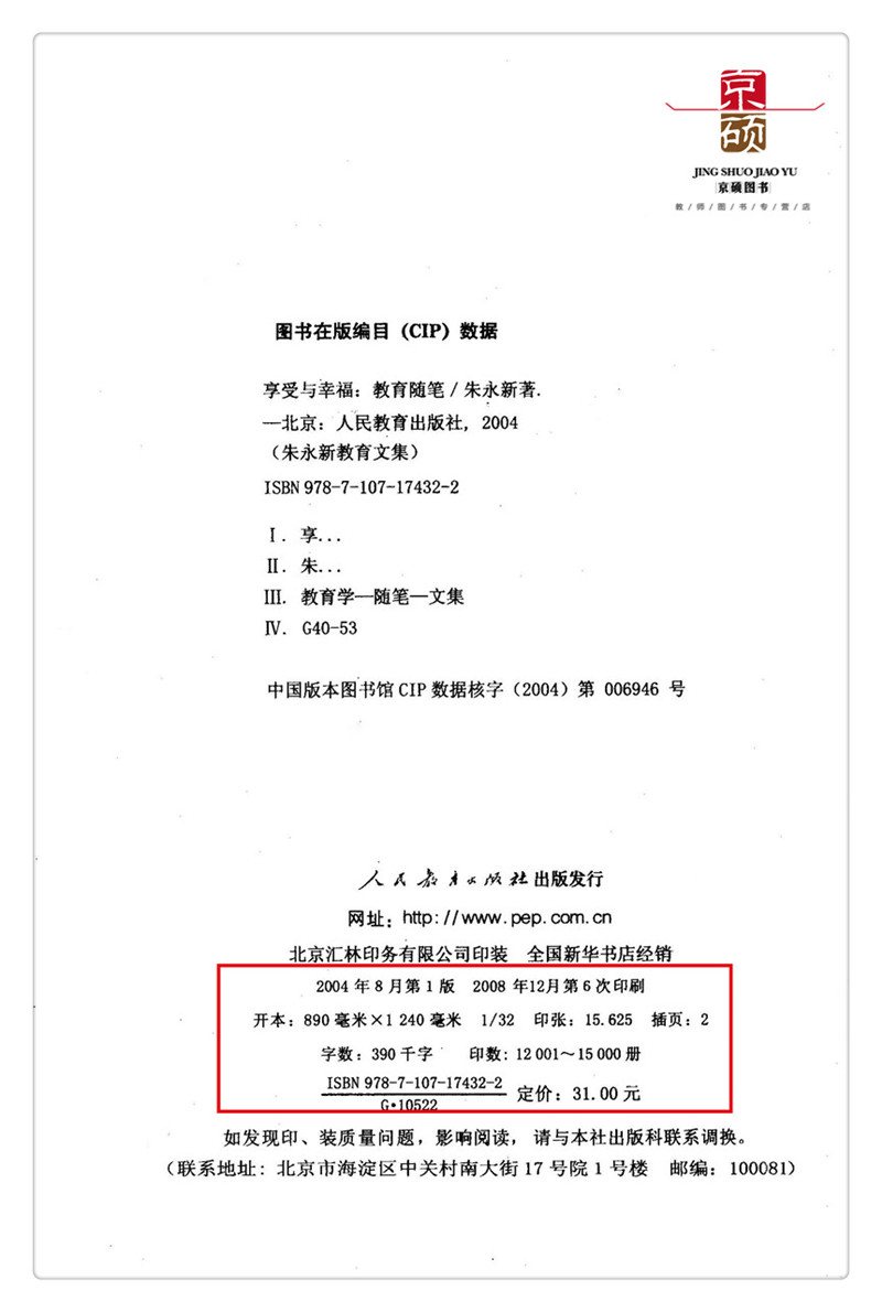 享受与幸福 教育随笔 社 包邮 9787107174322 人民教育出版 速发 卷九 朱永新教育文集