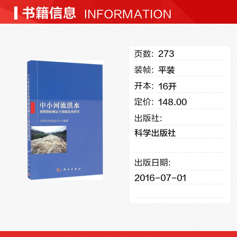 专业科技 社 编著 科学出版 图书籍 新华书店正版 新 水利 建筑 水利部水利信息中心 中小河流洪水预警指标确定与预报技术研究