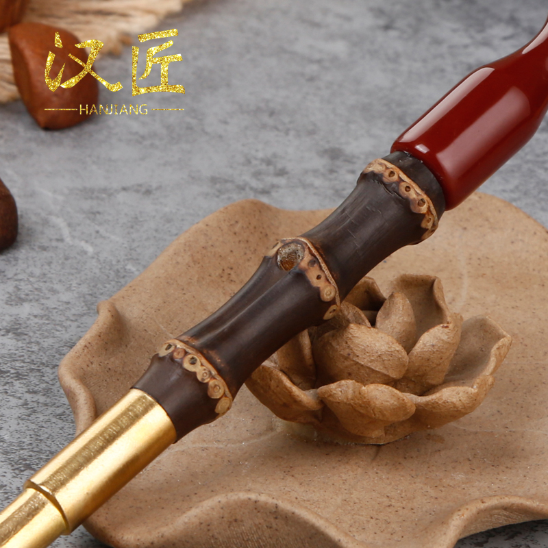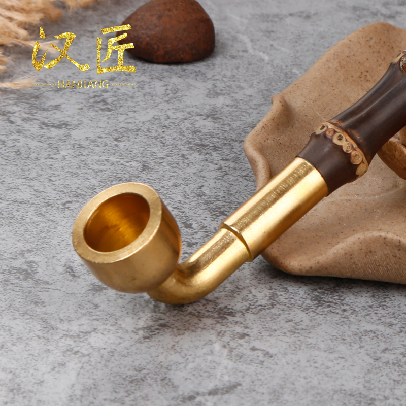 过滤烟草专用便携短款 汉匠烟斗紫竹节烟杆老式 黄铜旱烟袋锅子男士