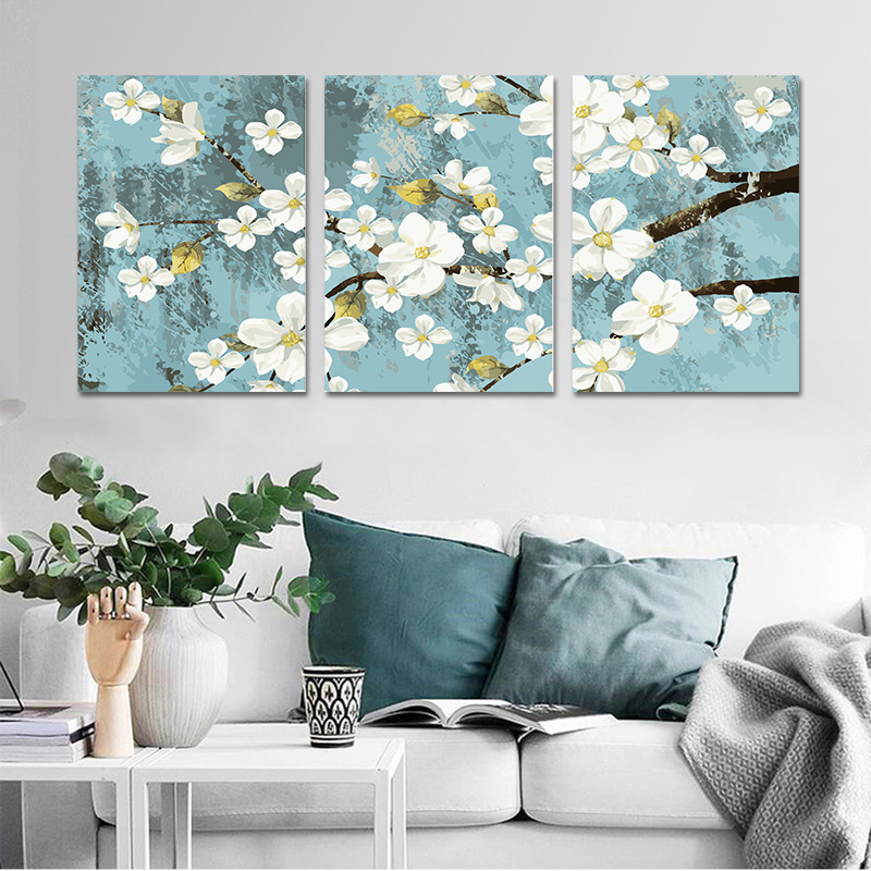 diy数字油画客厅卧室风景三联三拼大幅手工绘填色油彩装 饰画梅花