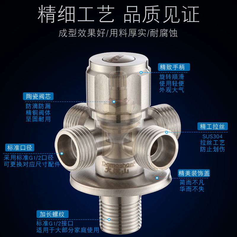 电热水器三通角阀304不锈钢一进二出三出四出马桶喷枪止水开关阀