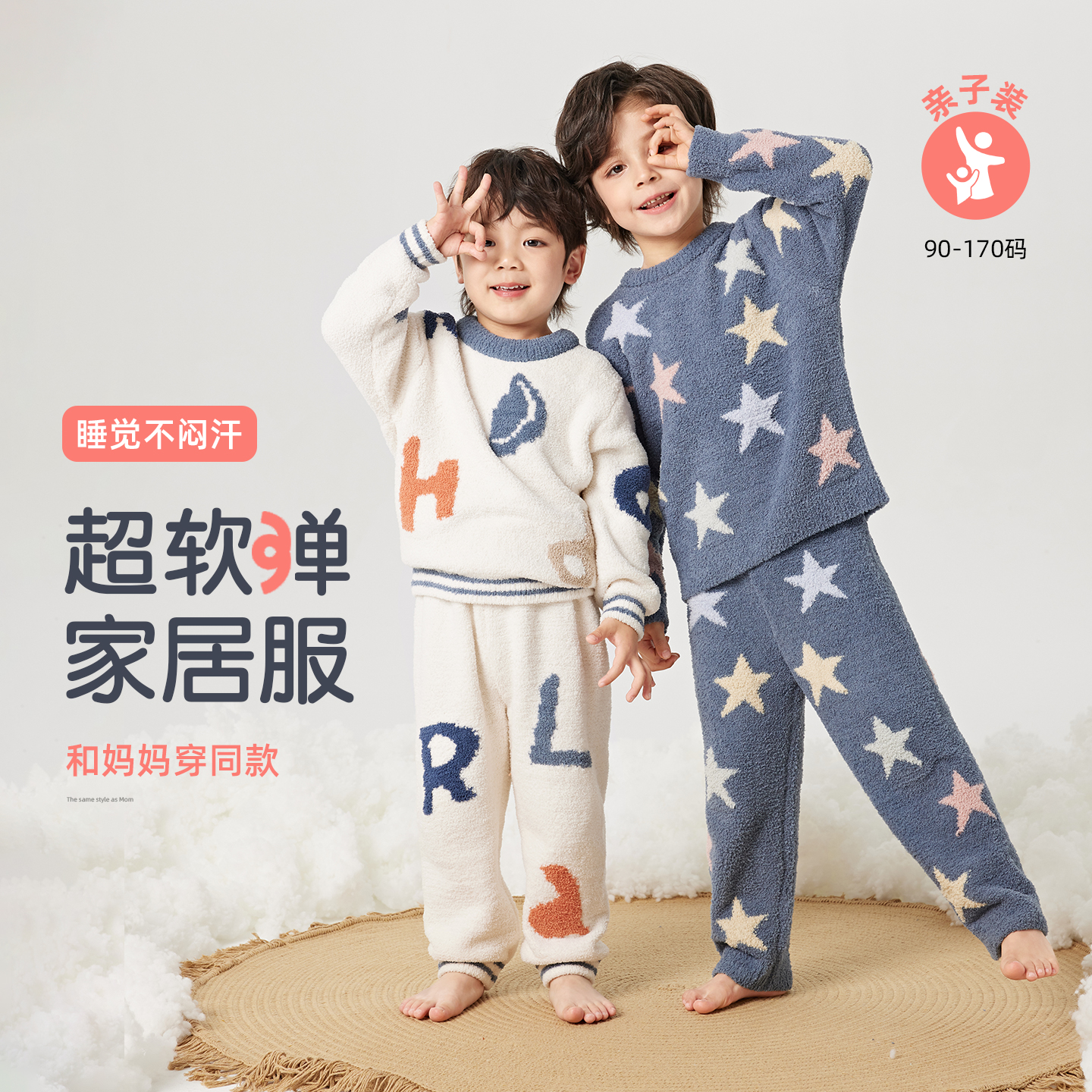保暖衣 男孩半边绒套装 儿童睡衣秋冬男童软绵绵家居服2025秋季 新款