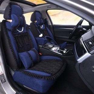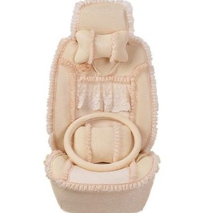 四季 蕾丝布艺全包坐垫套可爱通风座垫 垫凉垫 通用 女汽车坐垫四季