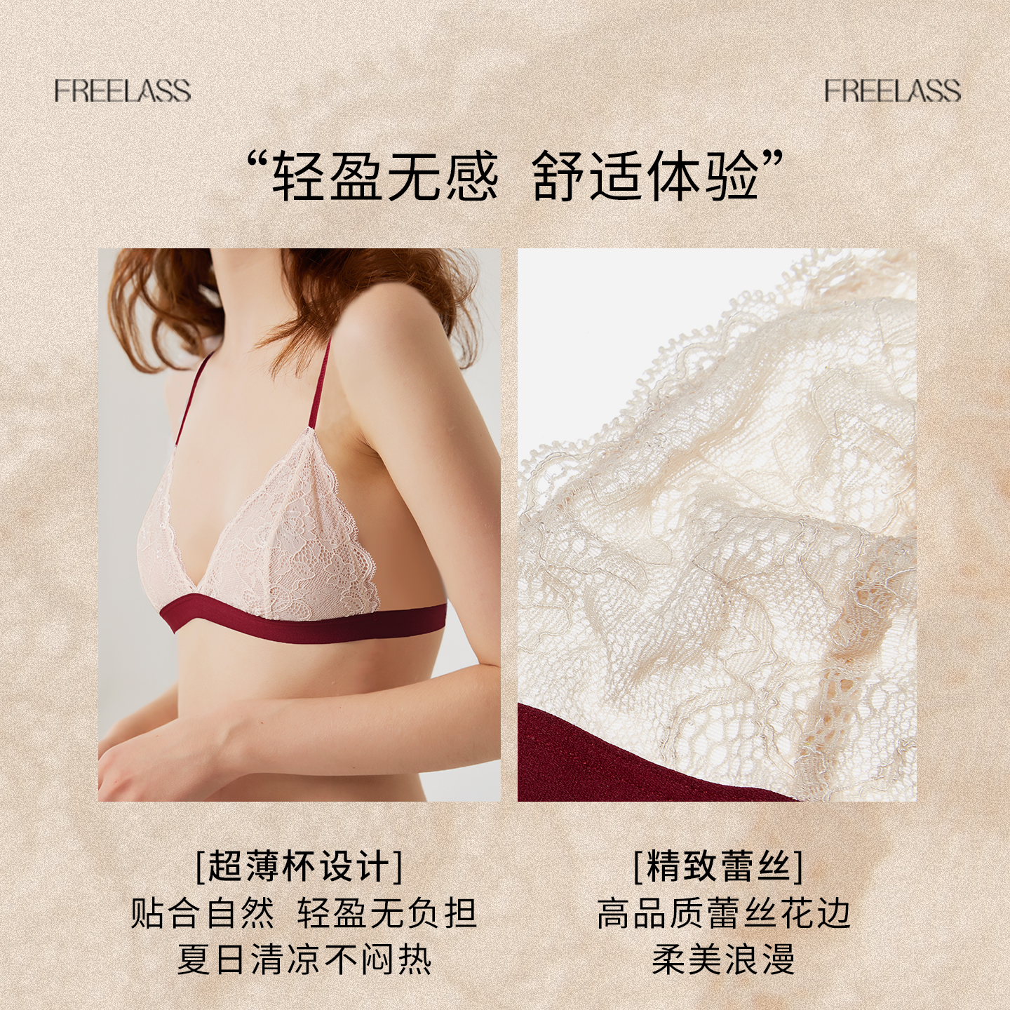 交叉美背 无钢圈文胸小胸胸罩套装 弗利少女法式 蕾丝内衣女超薄款