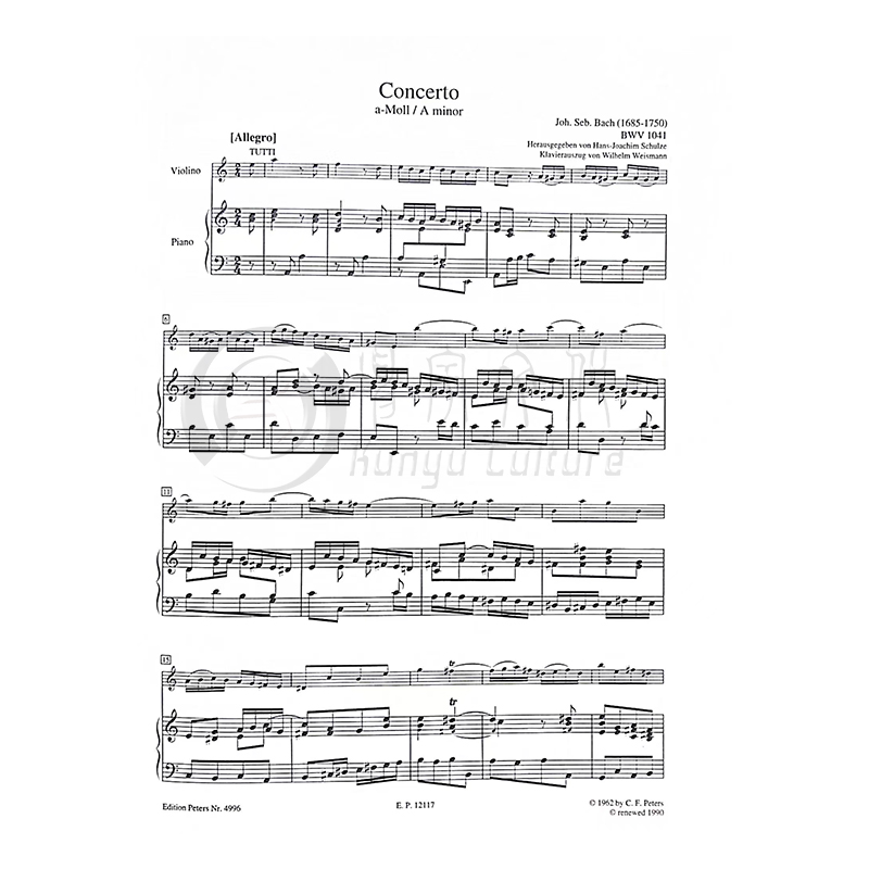 附管弦乐队伴奏CD Concerto a小调协奏曲BWV 小提琴和钢琴 and Q4996 巴赫 Violin 彼得斯乐谱 1041 Bach Piano Minor