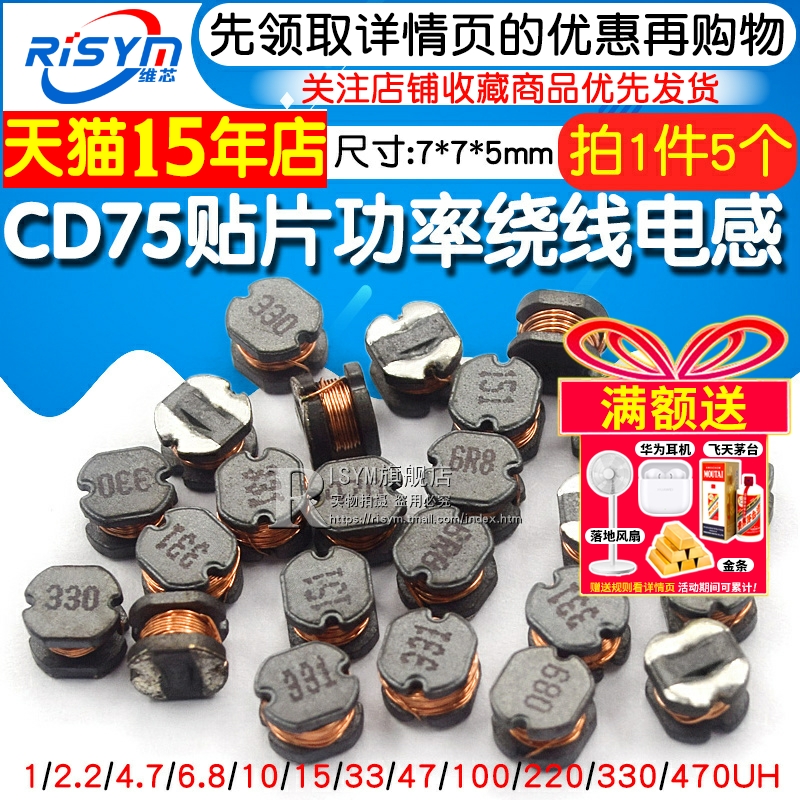 100UH 4.7 3.3 6.8 贴片功率绕线电感CD75 2.2