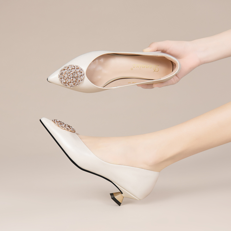 红色皮鞋 单鞋 鞋 四季 瓢鞋 新娘鞋 中跟真皮尖头婚鞋 新款 女春季 高跟鞋