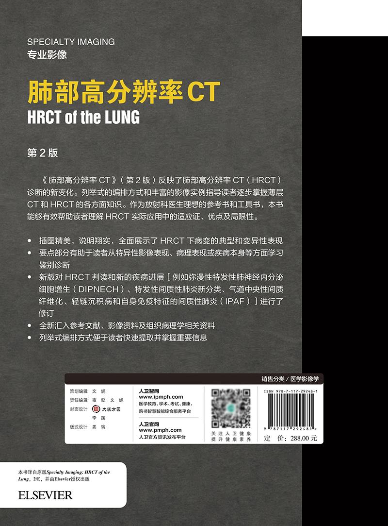 社 翻译赵绍宏学支气管炎肺部细菌感染肺结节肺癌病理胸部肺部超声诊断医学影像CT检查技术人民卫生出版 正版 肺部高分辨率CT第二2版