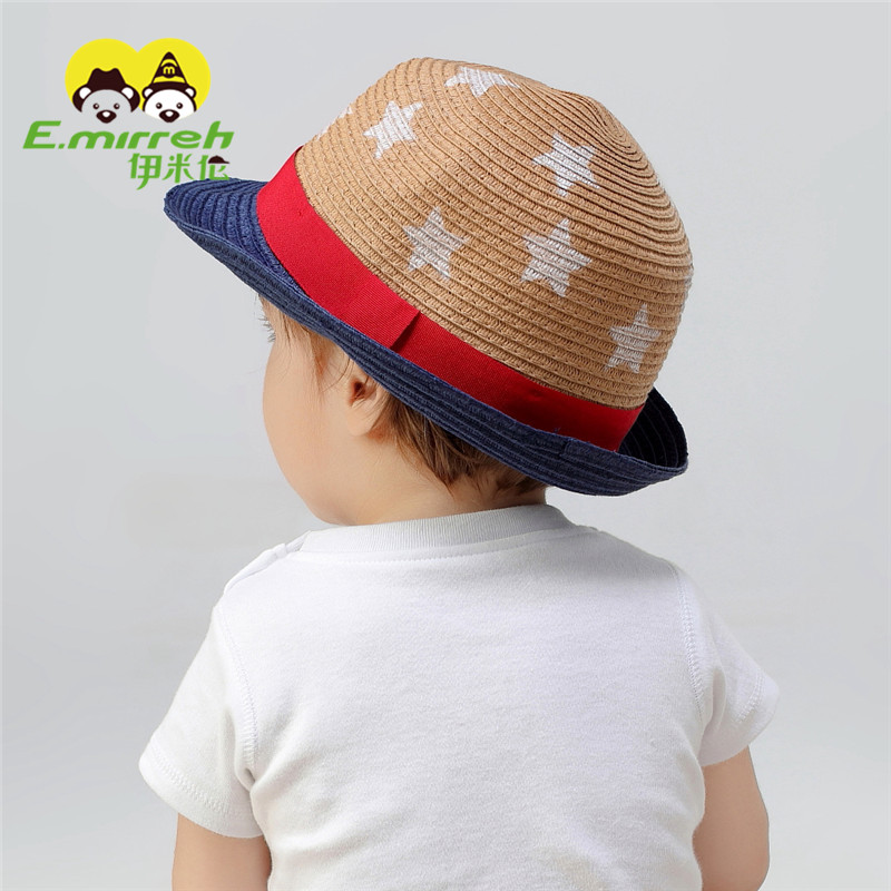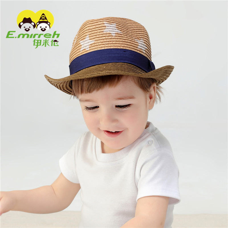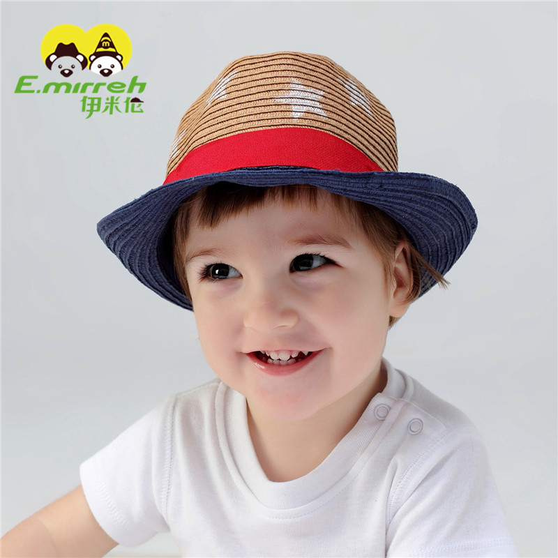 伊米伦儿童草帽春夏季 出游宝宝帽子男童沙滩帽草帽女童凉帽防晒帽