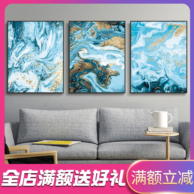 diy数字油画客厅风景三联三拼画大幅手工绘填色油彩画装 饰画蓝海