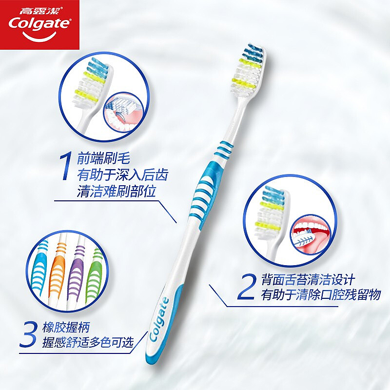 去牙渍牙刷家用家庭装 高露洁牙刷套装 超洁净中毛硬毛大刷头成人款