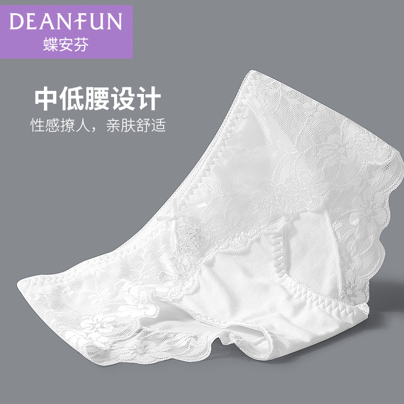 蝶安芬女内裤 白色性感蕾丝透明100%纯棉全棉裆夏低腰火辣诱惑三角