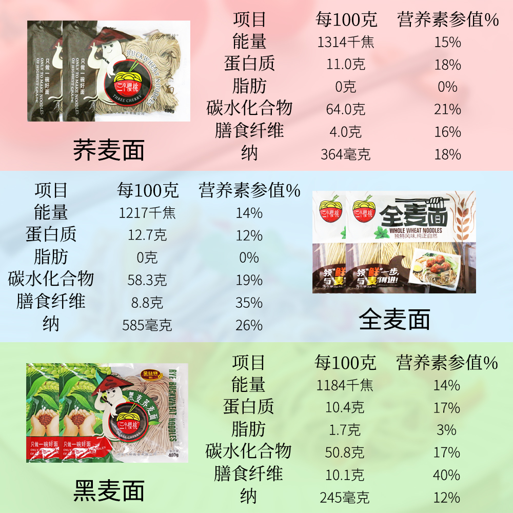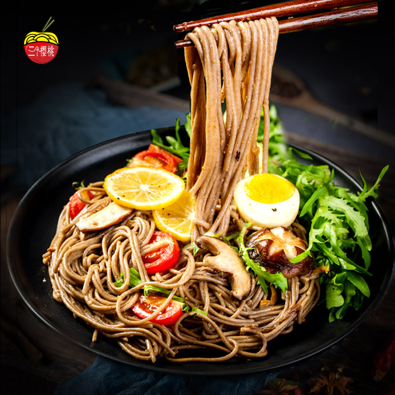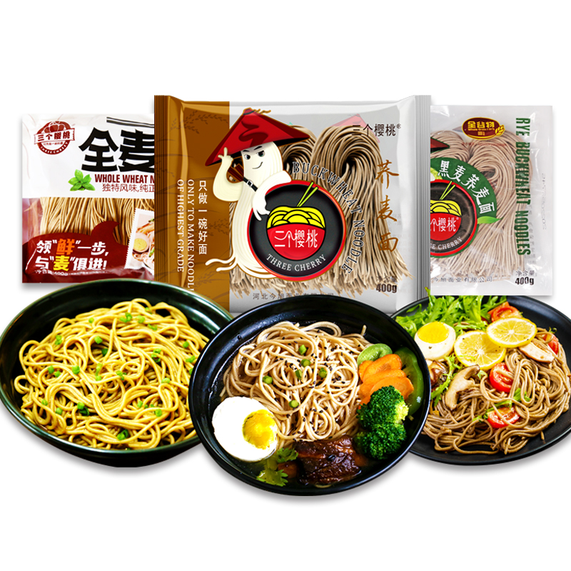 三个樱桃荞麦面0脂肪黑荞麦面全麦面条低脂粗粮代餐主食3袋组合装