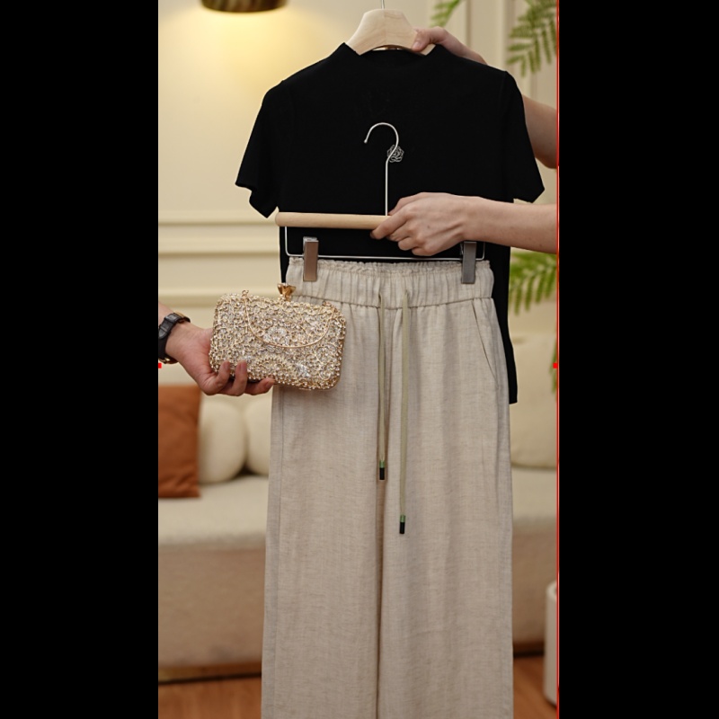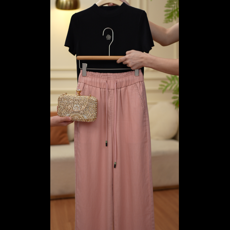 宽松垂感高腰显瘦冰凉直筒裤 2025天丝亚麻阔腿裤 长裤 薄款 女夏季