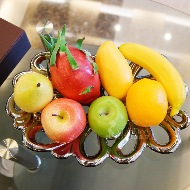 费灵家居美式 饰 奢华印度进口艺术高脚椭圆果盘果篓创意果碗家居装