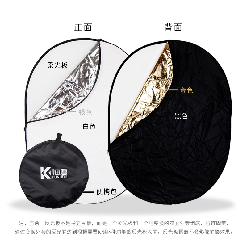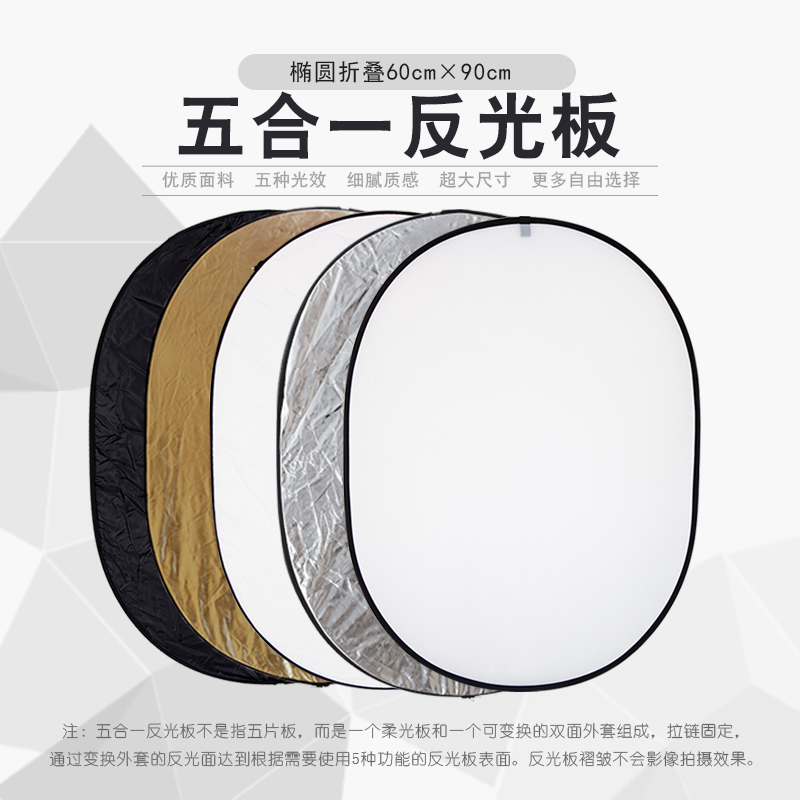90cm金色银色白色黑色柔光五合一便携户外人像柔光板补光摄影拍照打光板 摄影棚影楼椭圆可折叠反光板60 包邮
