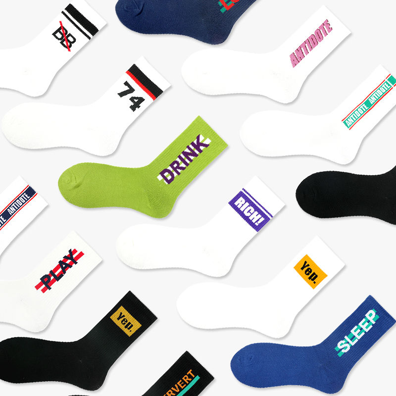 袜子男中筒袜ins潮高帮长袜女士长筒袜青少年字母潮流运动袜春秋