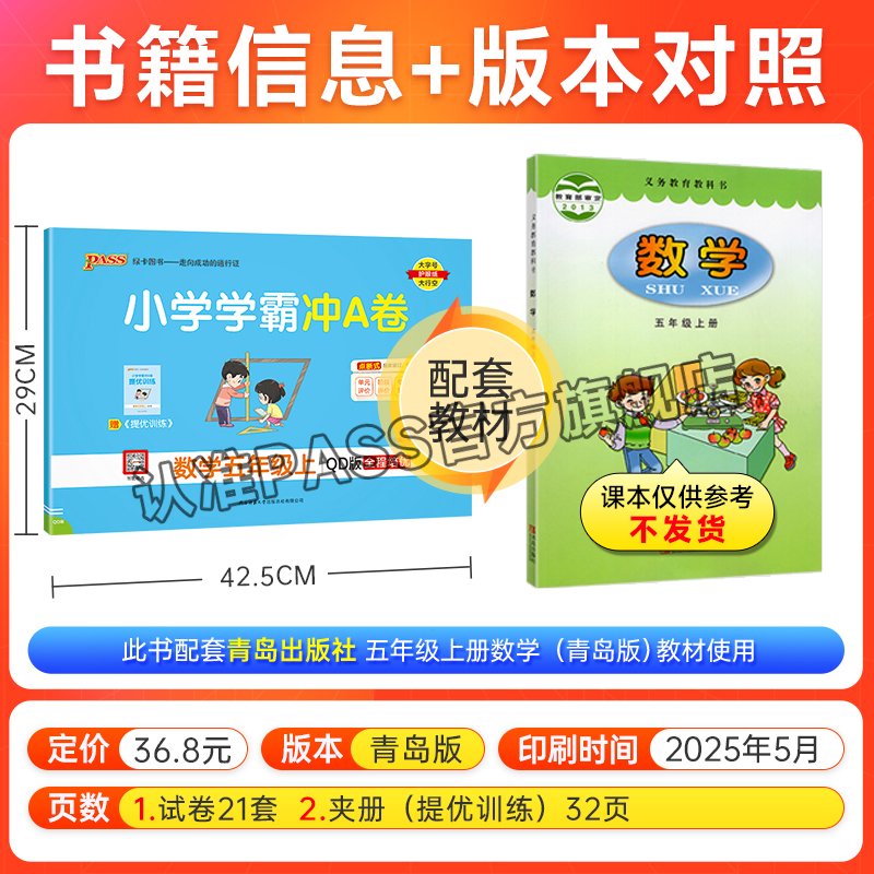 数学小学学霸冲A卷一二三年级四五六同步测试卷子上下册学生提优真题模拟单元 63制 期中期末复习冲刺PASS绿卡图书 青岛版 25新版