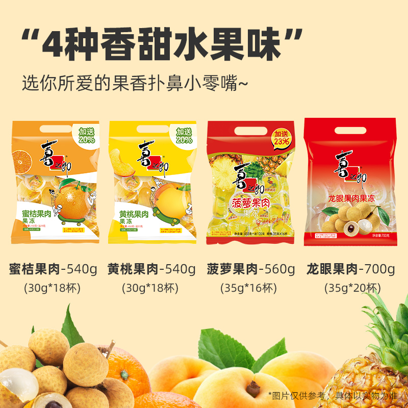 喜之郎果冻袋装 蜜桔橘子黄桃菠萝果肉水果冻儿童休闲零食大礼包