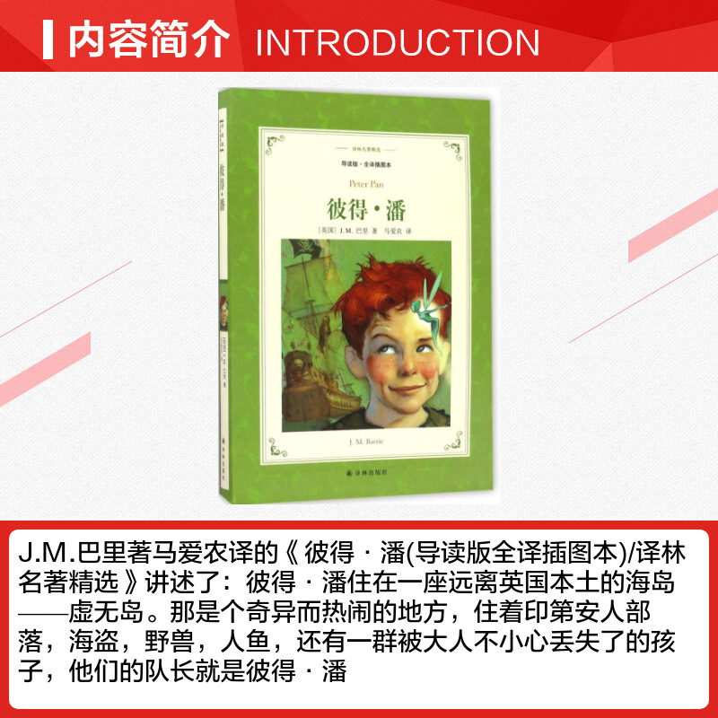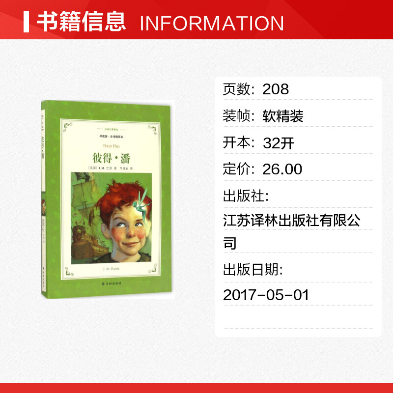 图书籍 社 J.M.巴里 译 世界名著文学 著;马爱农 英 J.M.Barrie 译林出版 彼得·潘导读版 新华书店正版 全译插图本