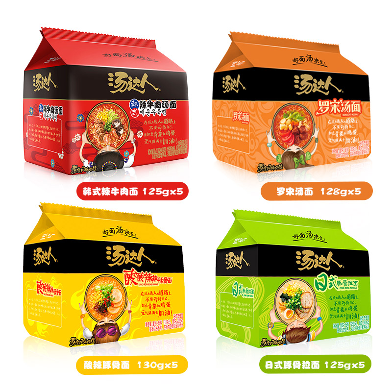 统一汤达人方便面袋装 豚骨拉面整箱酸酸辣辣牛肉面 组合混搭日式