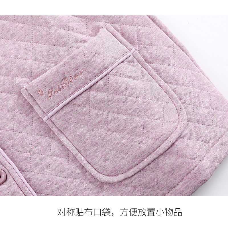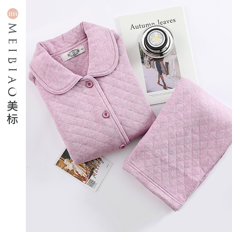 女秋冬三层保暖薄夹棉全棉质家居服 美标纯棉睡衣套装 双11预售