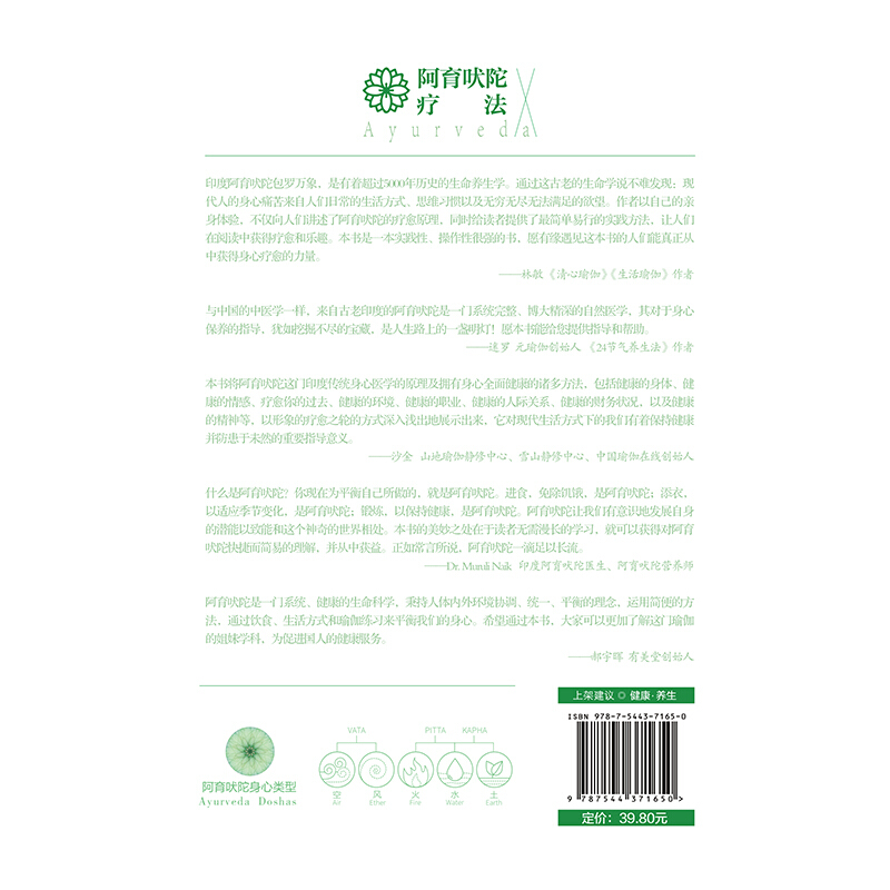 阿育吠陀疗法 书籍 起源印度 生命科学 生命之书 通过饮食瑜伽等达到身心灵全面疗愈指南 正版