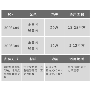 法帝罗 双变色暖黄光卫生间厨房节能 集成吊顶led平板灯300x600