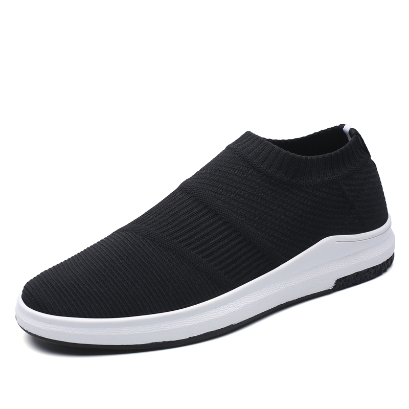 百搭袜子潮鞋 秋季 平底板鞋 飞织运动休闲全黑色一脚蹬懒人布鞋 男鞋