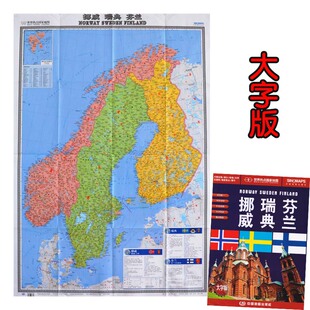 0.86米规格 新版 北欧旅游大学求学指引 行政 交通旅游景点地图贴图 芬兰地图 世界热点国家地图 折叠袋装 挪威 1.17 瑞典