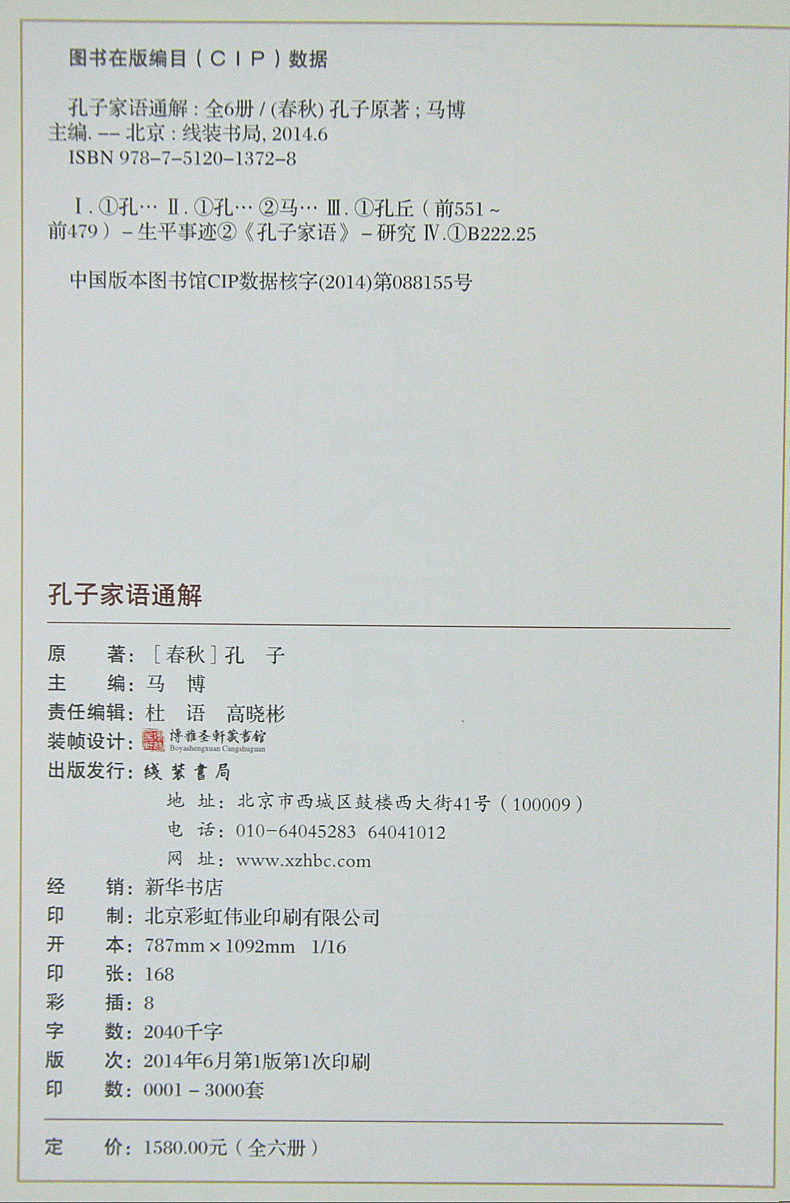 16开全6册 线装 书局 孔子家语通解 定价1580元 精装 全新正版 原文释义
