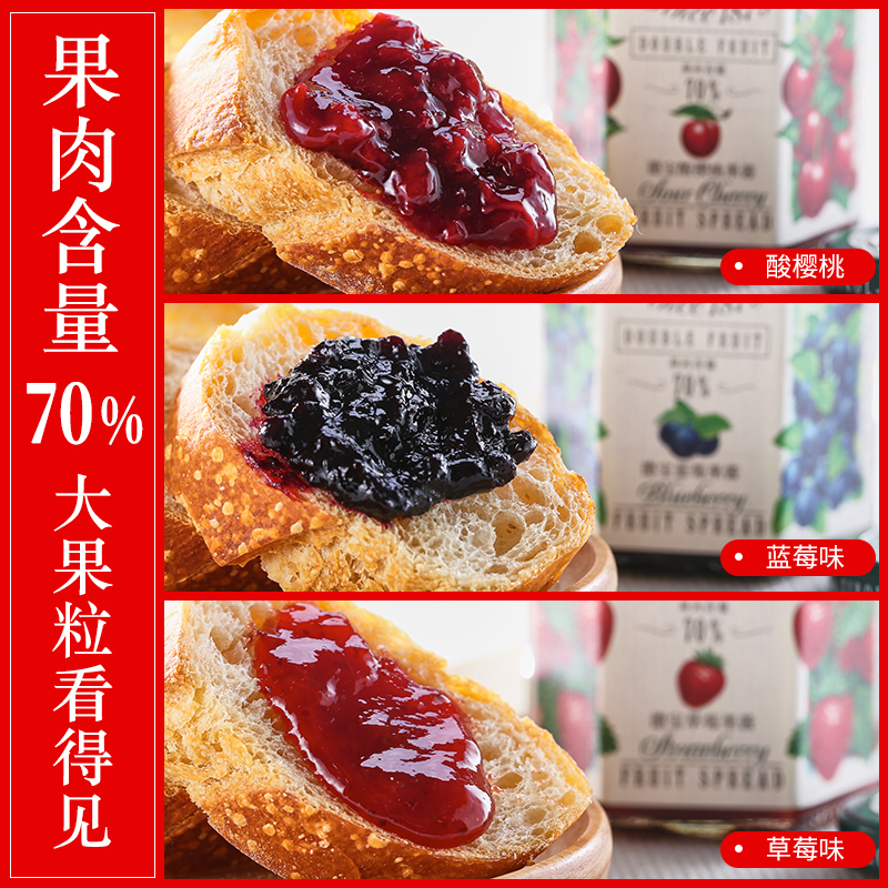 进口德宝果草莓蓝莓酸樱桃果酱3瓶涂抹面包水果大果粒烘焙早餐新