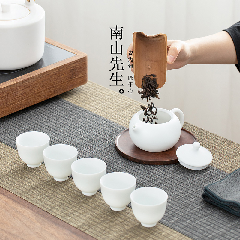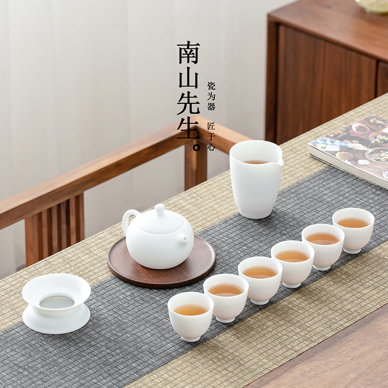 简约 家用客厅泡茶壶功夫茶具小套中式 南山先生 羊脂玉釉茶具套装