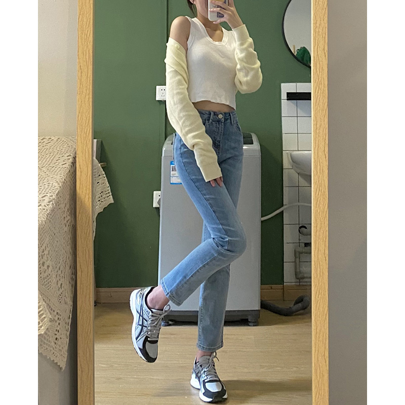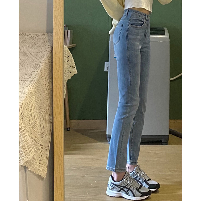 女 子高腰显瘦小个子直筒烟管弹力九分牛仔裤 2021年春秋新款 流行裤