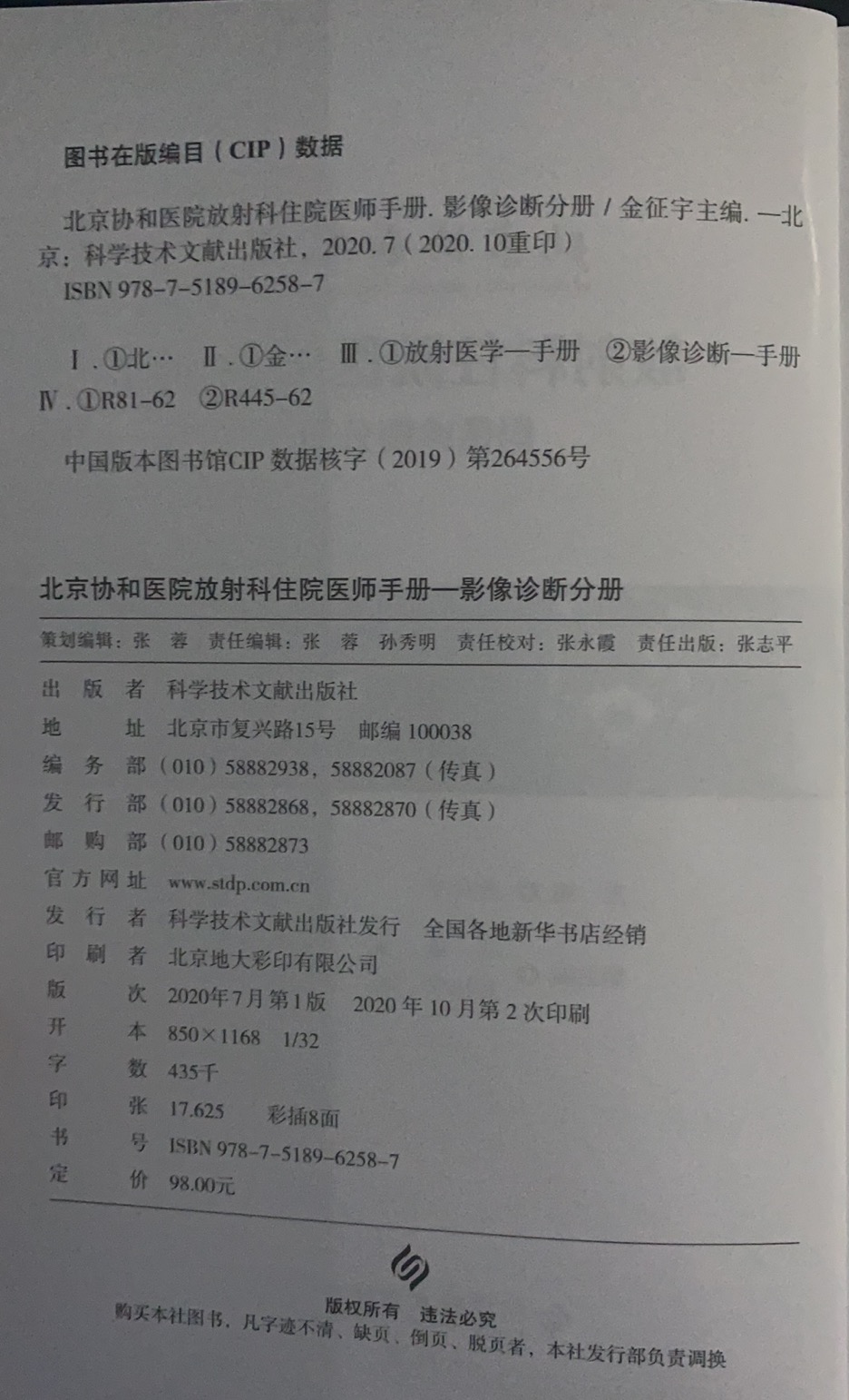 北京协和医院放射科住院医师手册 临床医学书籍 影像诊断分册