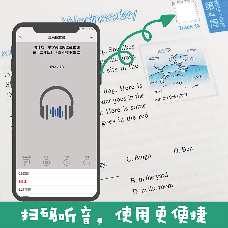 听读阅读理解 周计划小学英语阅读强化训练 二维码 外教朗读音频 2年级 二年级