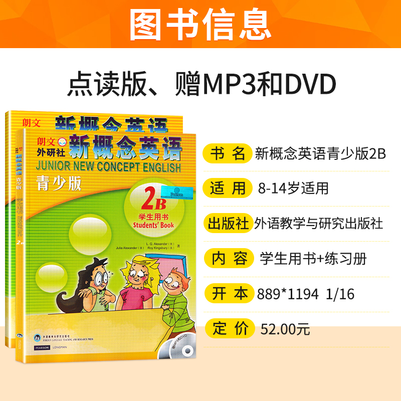mp3点读新概念小学生五六年级英语提高篇青少年儿童英语培训教材书籍英语学习 练习册含DVD 朗文外研社新概念英语青少版 2B学生用书